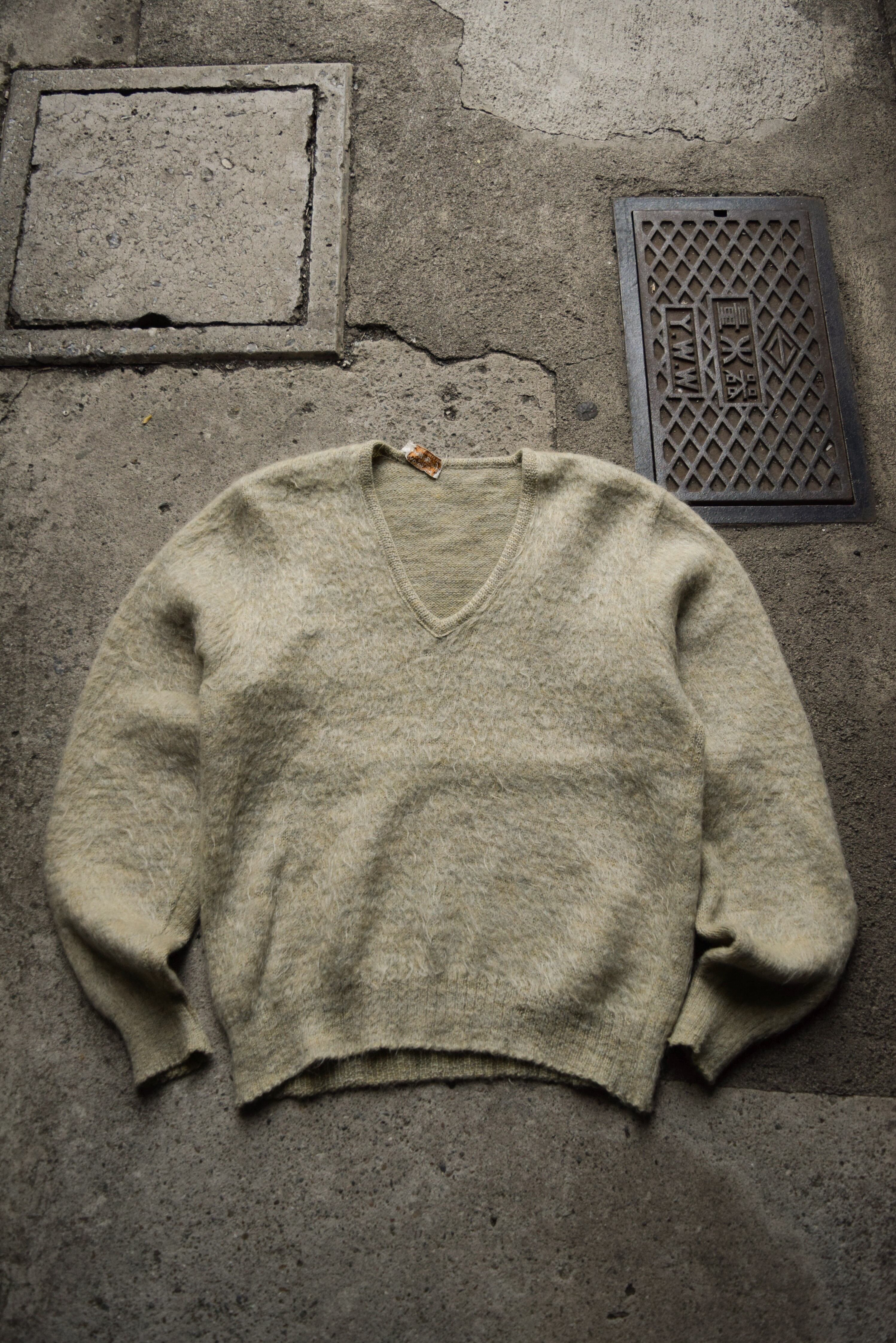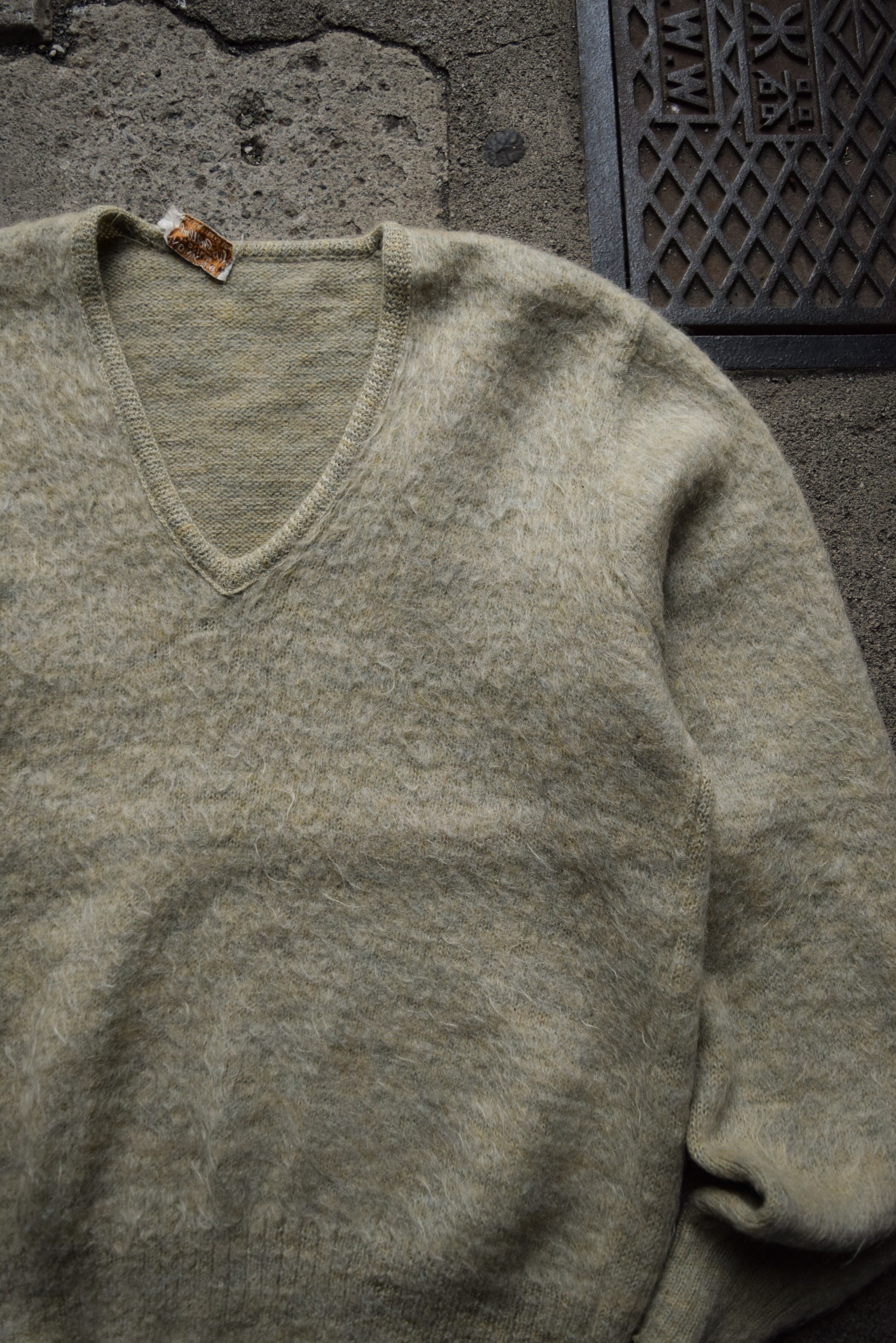 60s shaggy mohair V neck sweater "pale green"