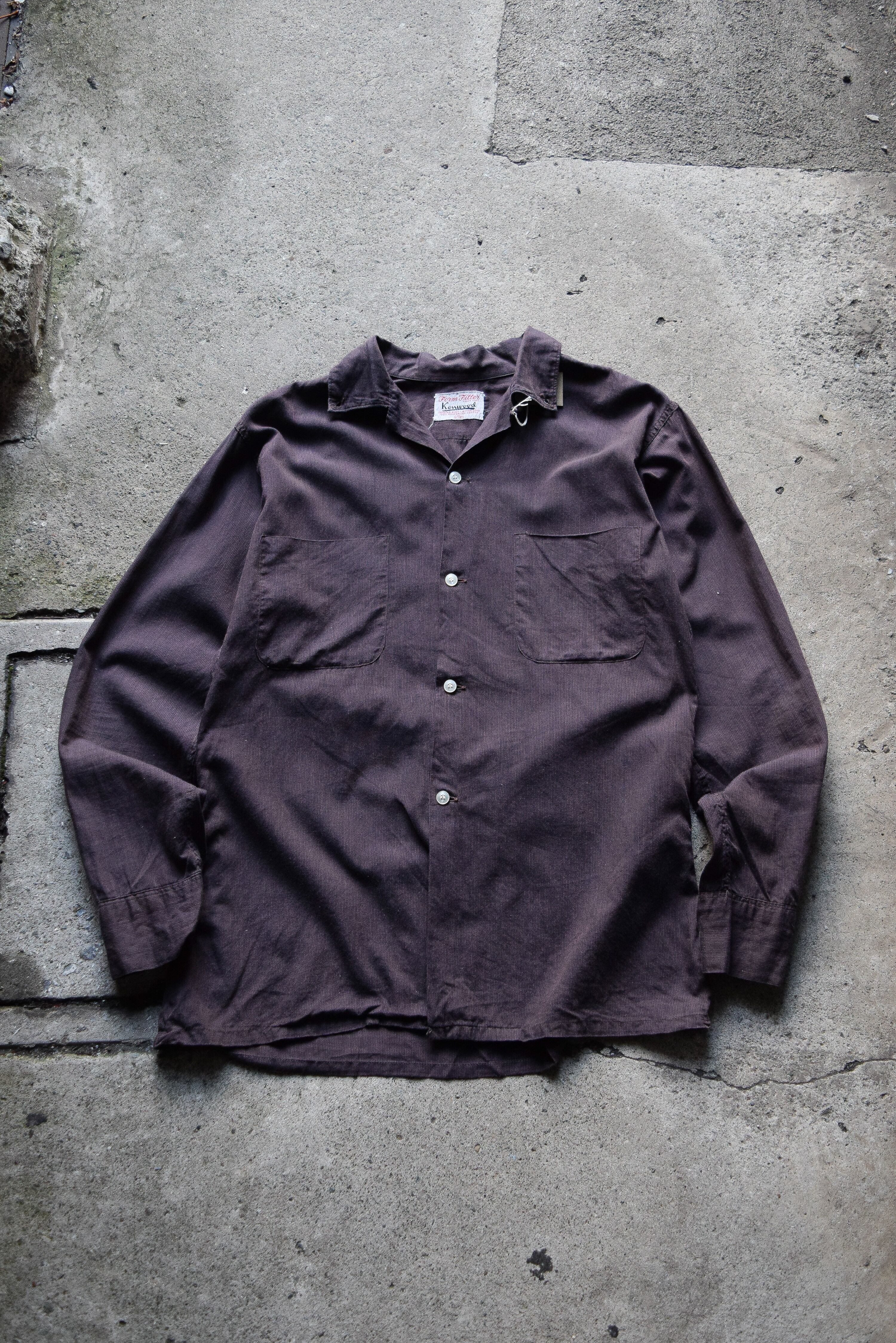 50s〜60s kenwood brown cotton loop color BD shirt "good textile"