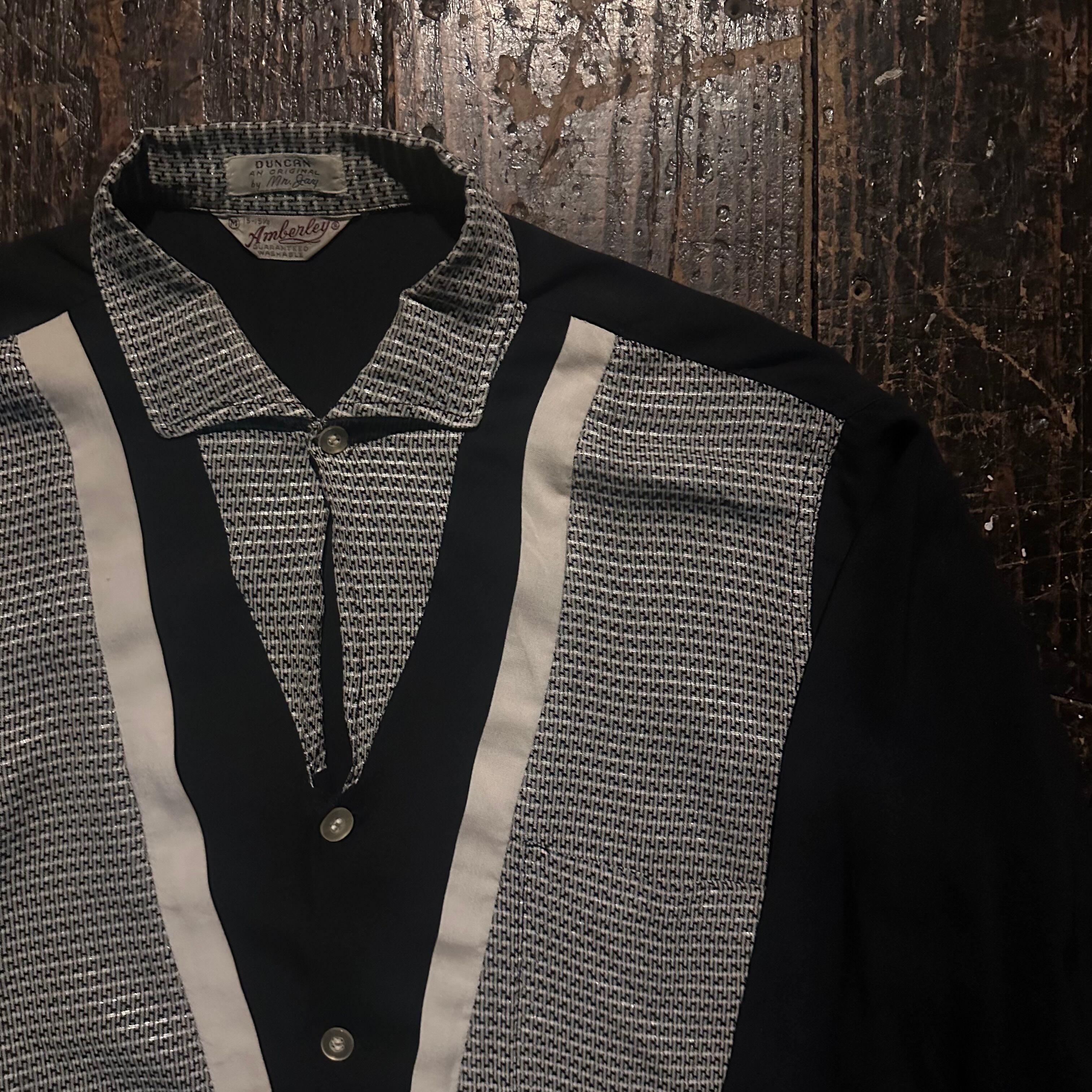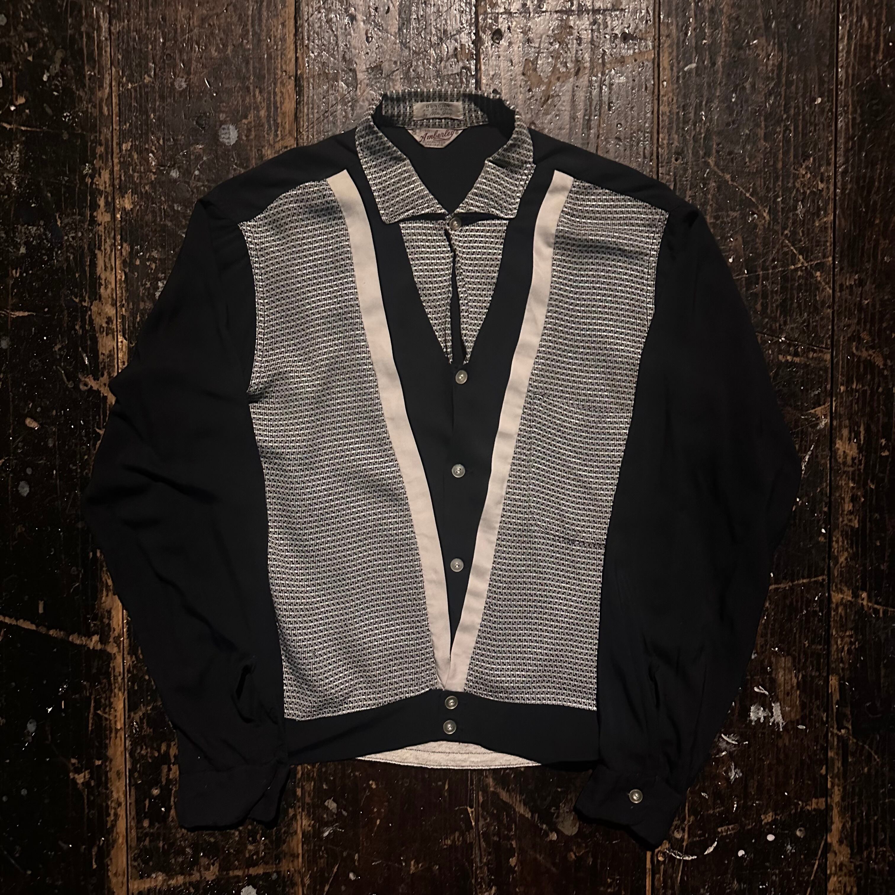 60s black rayon long sleeve shirt